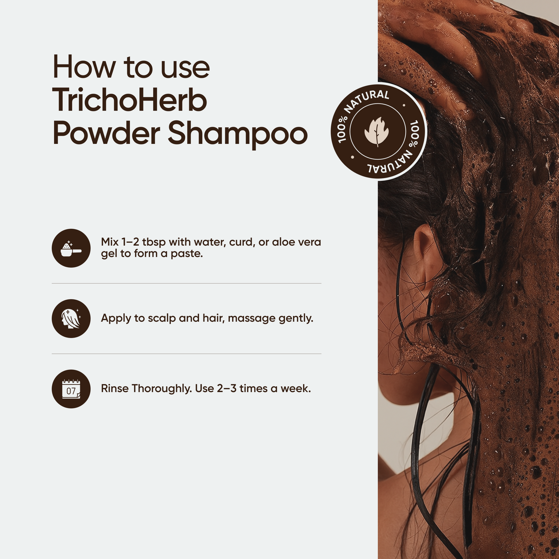 - Embrace the gentle touch of nature. Our shampoo, made with 100% natural herbs, cleanses effectively without the use of any harsh chemicals.
